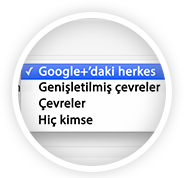 - Google+'daki herkes: Bir Google+ hesabınız varsa çevrelerinde olduğunuz herkes size e-posta gönderebilir. Gelecek olan e-postalara izin verip vermemeye karar verebilirsiniz. Sizi çevrelerine ekleyenlere bakın.